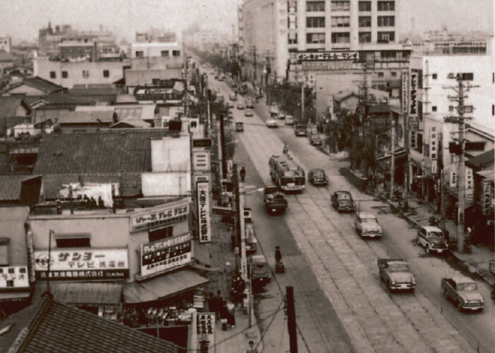 家電製品パーツの販売店として大阪の日本橋に創業。1954年に家電専門店へ転換。