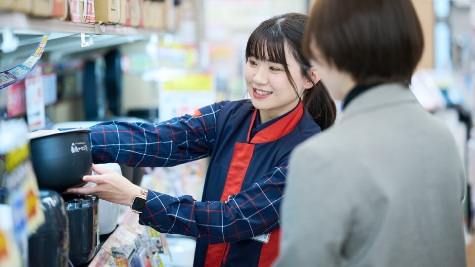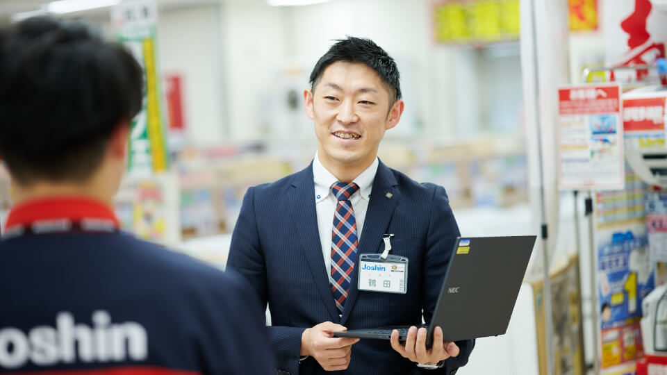リアル店舗「Joshin」にて家電製品の提案・販売にとどまらず、在庫のメンテナンスやアイデアを活かした売場づくり、イベントの企画など担当コーナーのマネジメントを担います。
